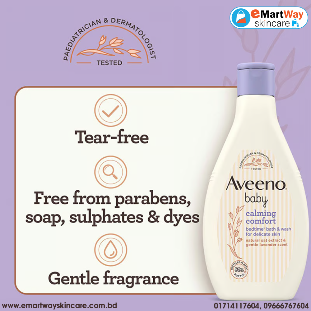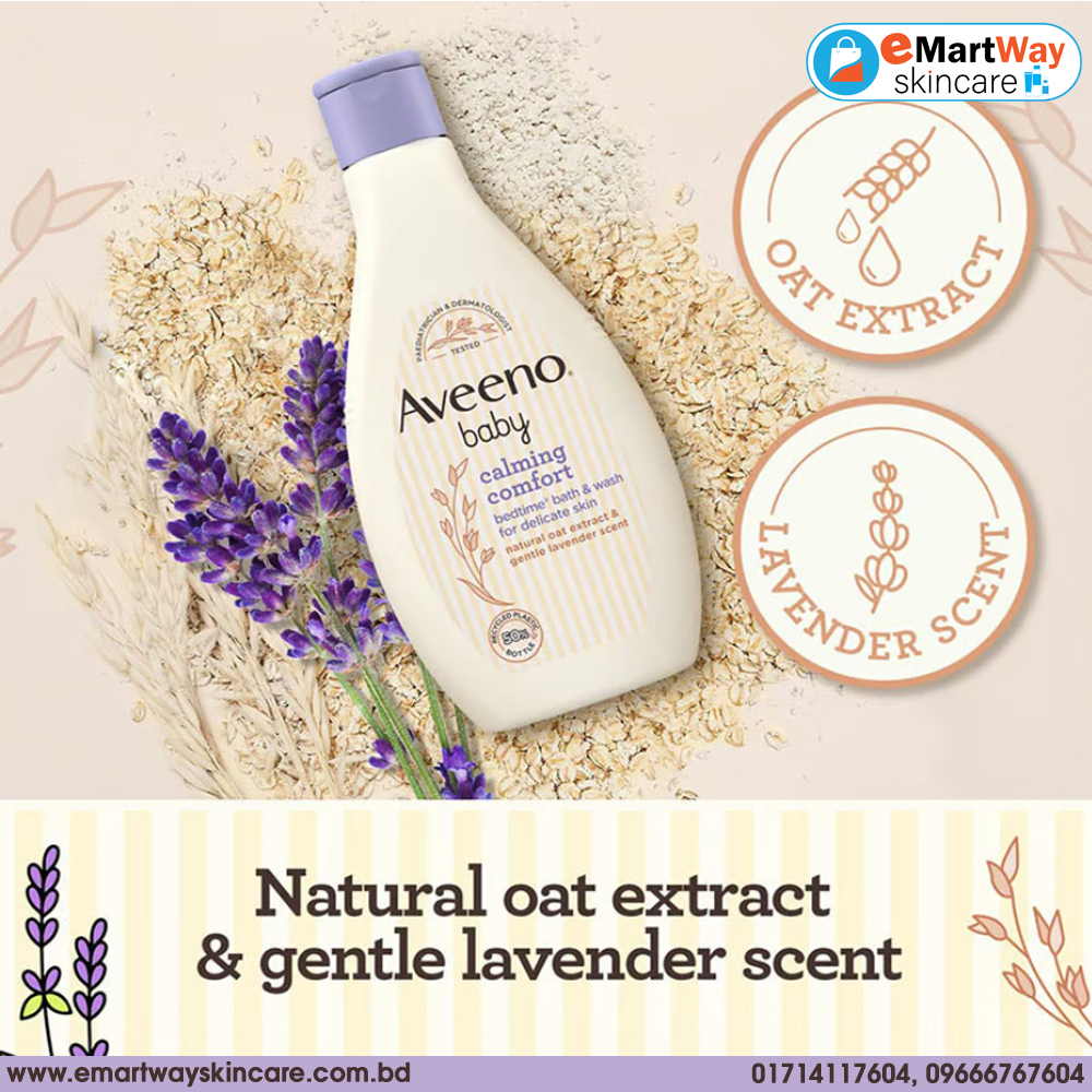 Aveeno Baby Calming Comfort Bedtime Bath & Wash is committed to helping every baby feel comfortable in their own skin by offering nourishing solutions. Our promise is to help you care confidently for your baby's delicate skin, while also making choices that care for the earth and enable communities to thrive.