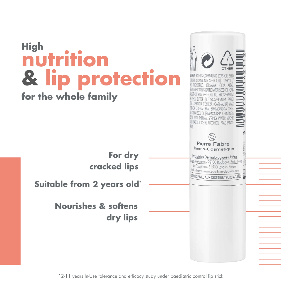 Ingredients: Ricinus Communis (Castor) Seed Oil (Ricinus Communis Seed Oil), Caprylic/Capric Triglyceride, Beeswax (Cera Alba), Carthamus Tinctorius (Safflower) Seed Oil (Carthamus Tinctorius Seed Oil), Butyrospermum Parkii (Shea) Oil (Butyrospermum Parkii Oil), Squalane, Copernicia Cerifera (Carnauba) Wax (Copernicia Cerifera Cera), Simmondsia Chinensis (Jojoba) Seed Oil (Simmondsia Chinensis Seed Oil), Avene Thermal Spring Water (Avene Aqua), Citric Acid, Fragrance (Parfum), Glycerin, Leontopodium Alpinum Flower/Leaf Extract, Potassium Sorbate, Ribes Bubbum (Currant) Fruit Extract (Ribes Rubrum Fruit Extract), Rubus Idaeus (Raspberry) Fruit Extract (Rubus Idaeus Fruit Extract), Sodium Benzoate, Vaccinum (Myrtillus Fruit Extract, Water (Aqua).