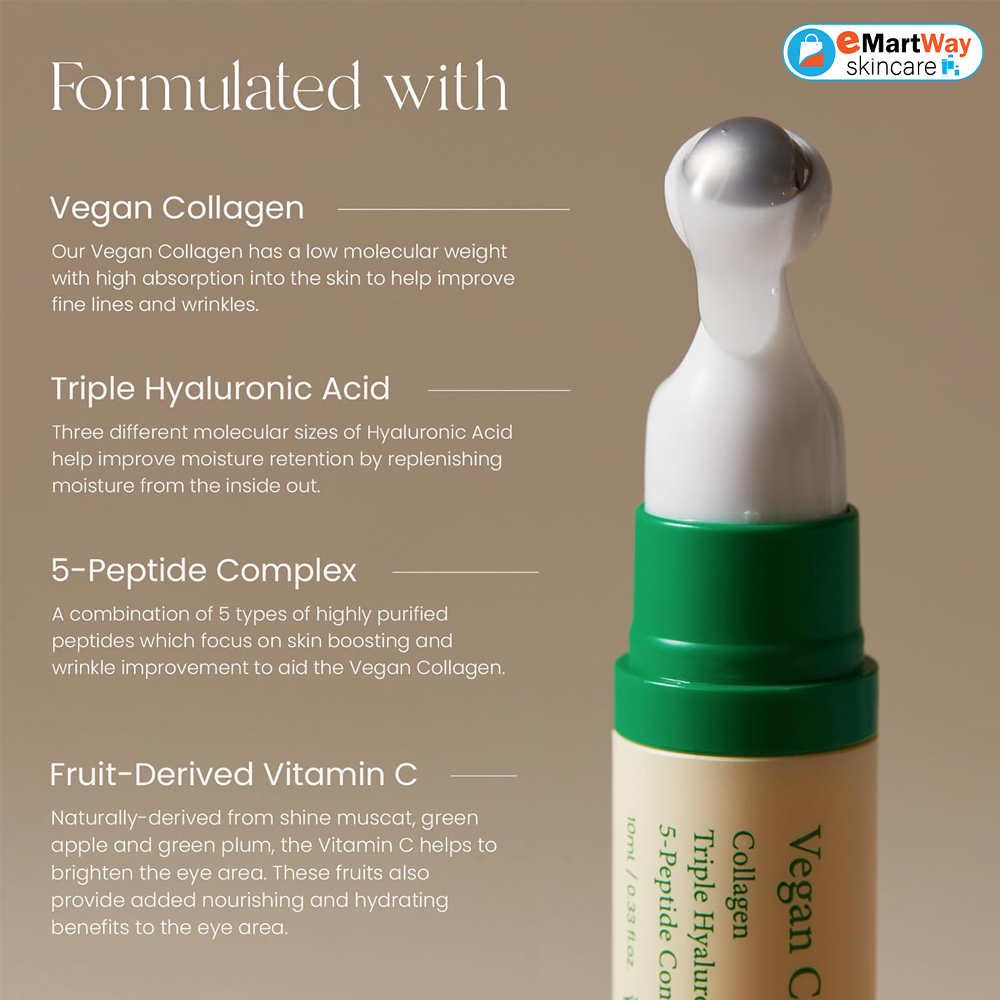 Water, Methylpropanediol, Glycerin, 1,2-Hexanediol, Niacinamide, Adenosine, Collagen (450ppm), Sodium Hyaluronate, Hydrolyzed Hyaluronic Acid, Sodium Acetylated Hyaluronate, Tripeptide-1, Palmitoyl Pentapeptide-4, Hexapeptide-9, Acetyl Hexapeptide-8, Copper Tripeptide-1,