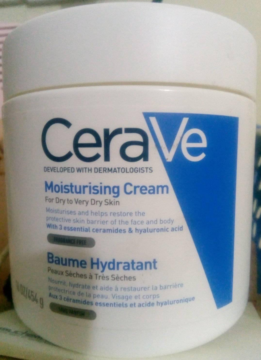 CeraVe Moisturizing Cream includes three essential ceramides and hyaluronic acid to effectively hydrate the skin and restore the skin’s protective barrier. Developed with dermatologists and suitable for dry and very dry skin on the face and body, this rich, non-greasy, fast-absorbing moisturizing cream features our patented MVE Delivery Technology to release a steady stream of moisturizing ingredients throughout the day and night. CeraVe Moisturizing Cream with ceramides is fragrance free.