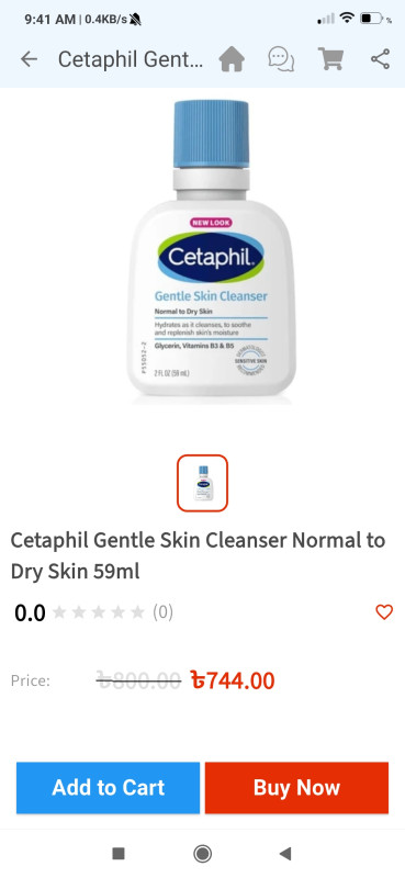 Cetaphil Gentle Skin Cleanser is a mild, non-irritating formula designed to cleanse sensitive, normal, and dry skin without causing dryness or irritation. It removes dirt, oil, and impurities while maintaining the skin’s natural moisture balance, leaving it soft, smooth, and comfortable. Ideal for daily use on both face and body.