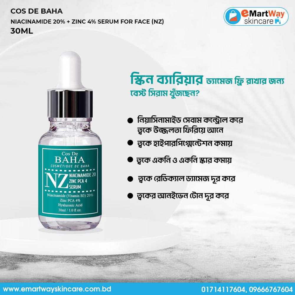 Buy Cos De BAHA Niacinamide 20% + Zinc 4% Serum For Face Online in Bangladesh from emartway.com.bd
