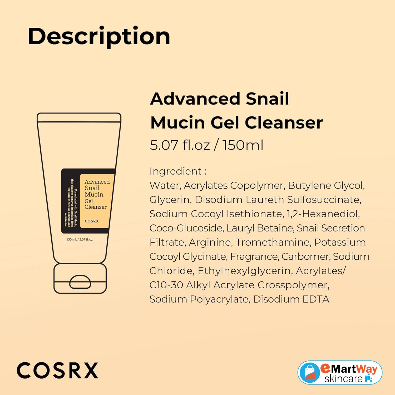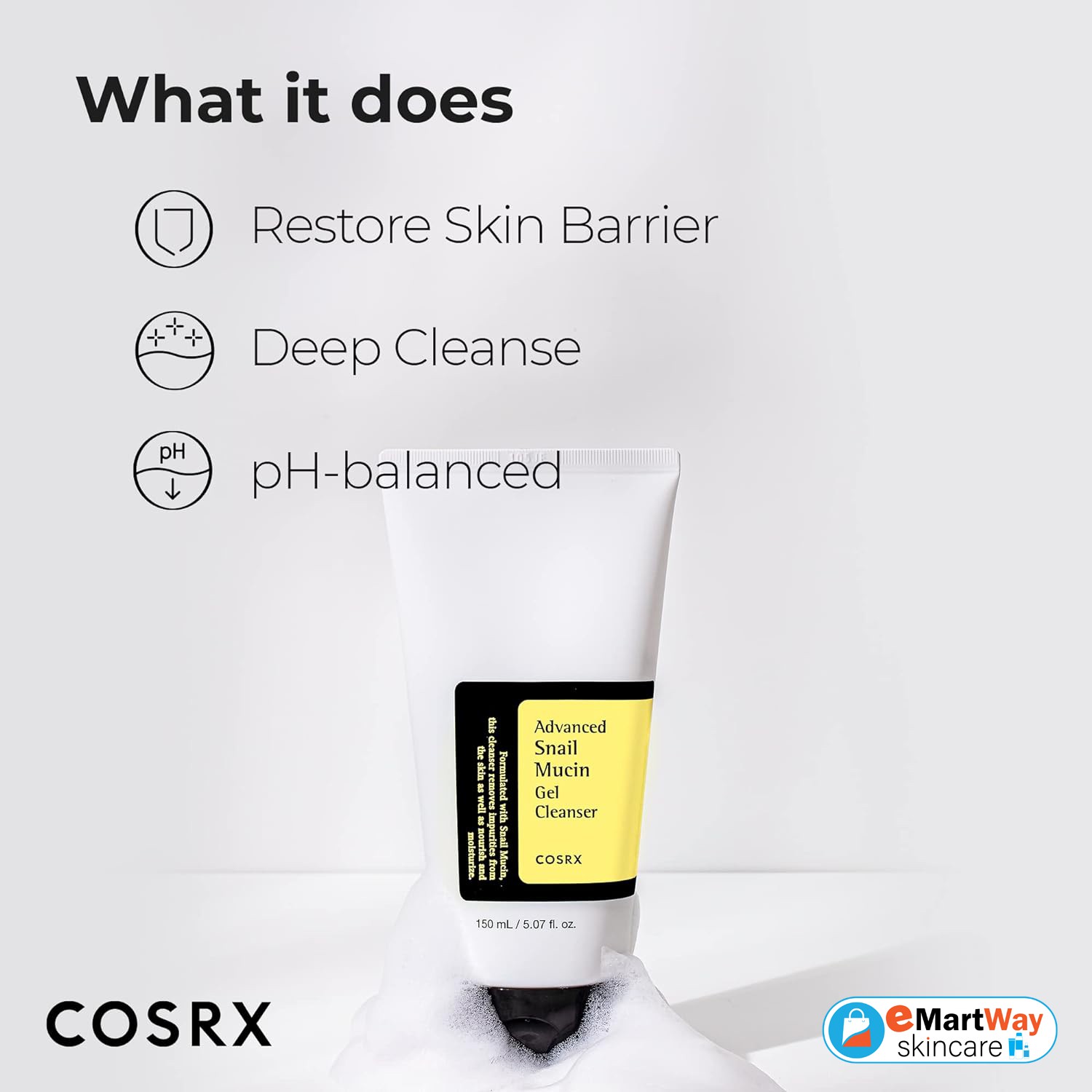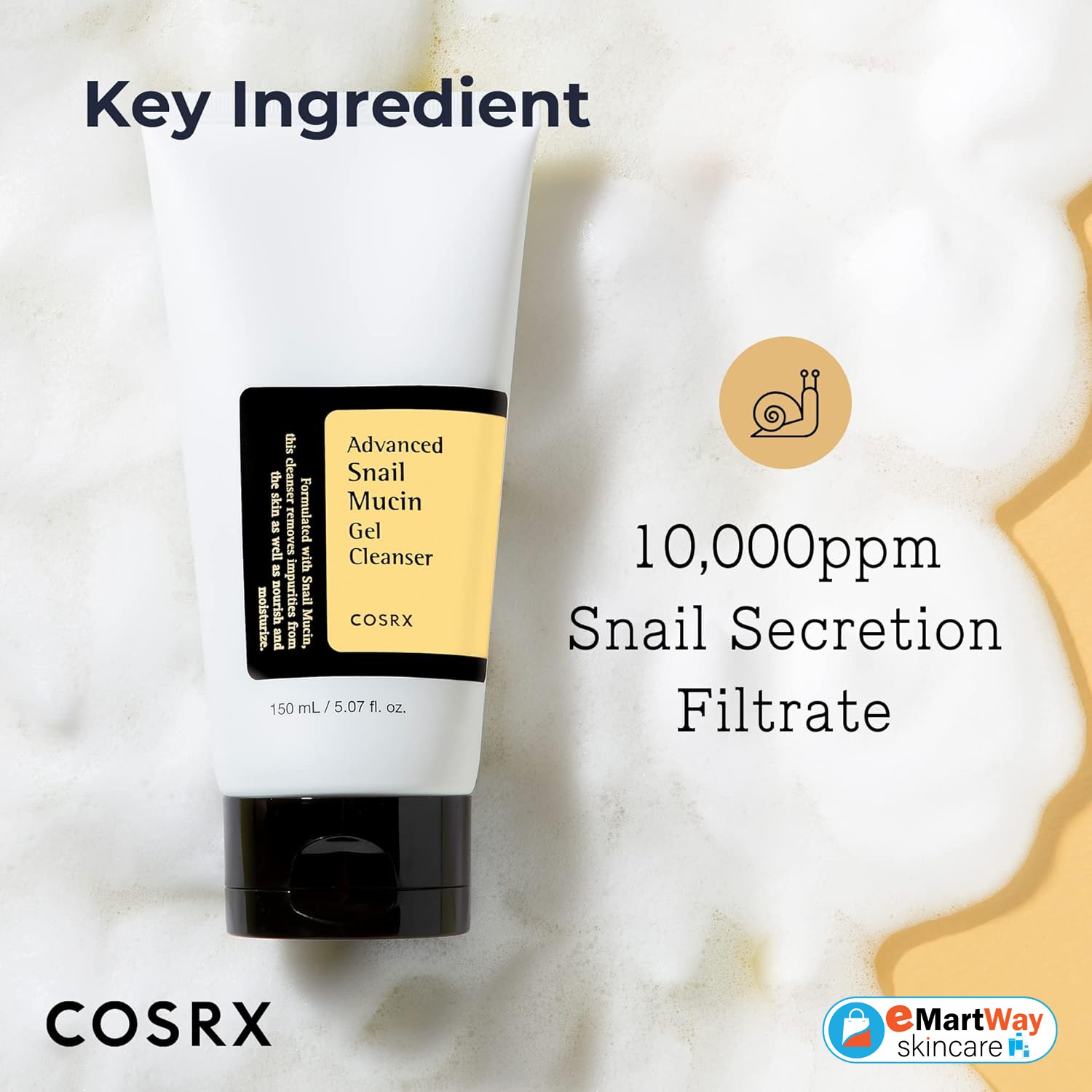 The Cosrx Advanced Snail Mucin Gel Cleanser is a specially formulated gel cleanser enriched with snail mucin to hydrate and protect the skin. Supercharged with 10,000ppm of snail secretion filtrate to deliver a powerful regenerative and hydrating effect, this ultra-gentle cleanser effectively removes impurities without stripping the skin, protecting its barrier while moisturising, restoring and healing for a smooth complexion.