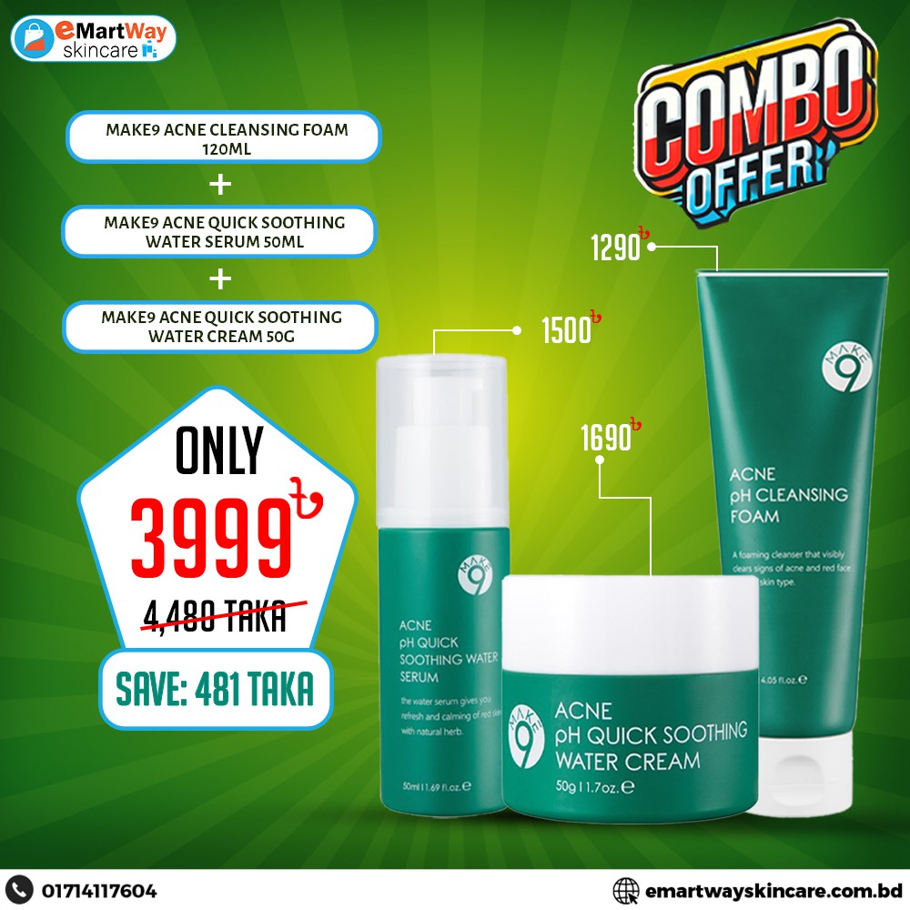 Ratings & Reviews of MAKE9 ACNE Combo ( MAKE9 Acne Quick Soothing Water Cream 50g + MAKE9 Acne Quick Soothing Water Serum 50ml + MAKE9 Acne Cleansing Foam 120ml)
