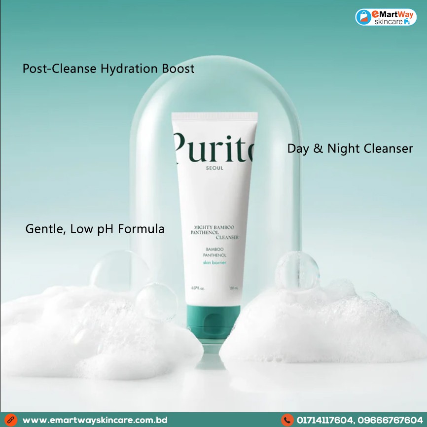 PURITO Seoul Mighty Bamboo Panthenol Cleanser a gentle yet effective low pH cleanser designed to support your skin’s natural barrier. Infused with bamboo extract from the pristine forests of Damyang, rich in amino acids and minerals, this cleanser mimics your skin’s natural moisture, keeping it soft, smooth, and healthy.