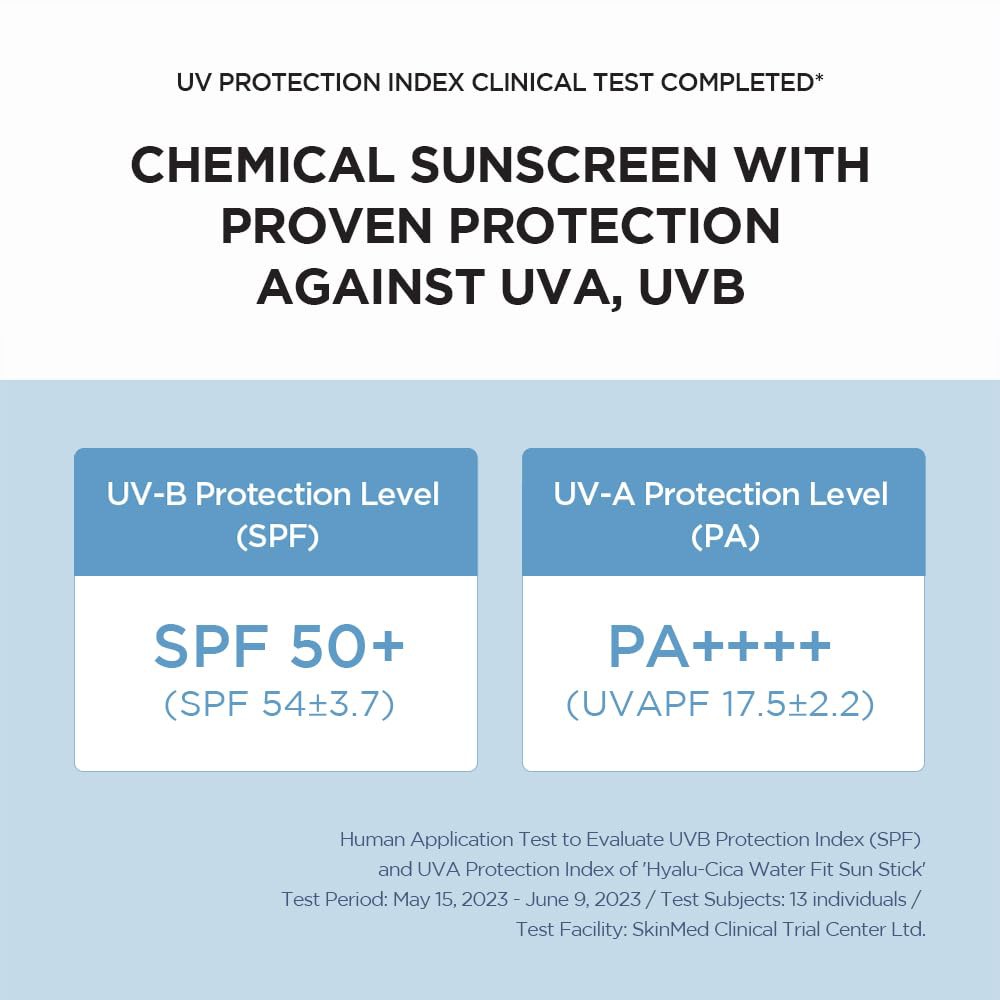• SKIN1004 Madagascar Centella Hyalu-Cica Silky-fit Sun Stick A moisturizing chemical sun stick that helps defend UV rays and keep your skin hydrated.