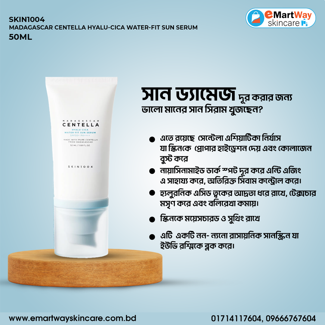 Skin1004 Madagascar Centella Hyalu-Cica Water-Fit Sun Serum Dive into the realm of ultimate sun protection and hydration with SKIN1004’s Madagascar Centella Hyalu-Cica Water-Fit Sun Serum SPF50+ PA++++.
