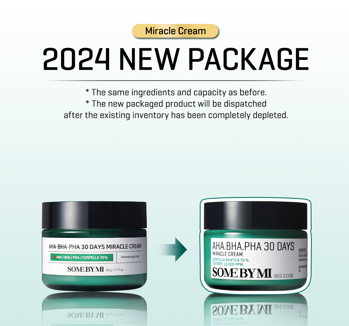 Revitalise dull, uneven skin with the SOME BY MI AHA, BHA, PHA 30 Days Miracle Cream with a blend of natural tea extract and three acids, this intelligent concoction exfoliates and dislodges dead, dulling skin cells, revealing a more even tone while minimising pore size, blackheads and breakouts. A light, cooling cream with a low pH, the SOME BY MI – AHA, BHA, PHA 30 Days Miracle Cream offers the perfect balance between effectiveness and tolerance. Packed with tea tree, AHA, BHA and PHA, this miracle cream works wonders to your skin in 30 days! It purifies, removes dead skin cells and sebum inside pores as well as preventing further loss of moisture all in one go.