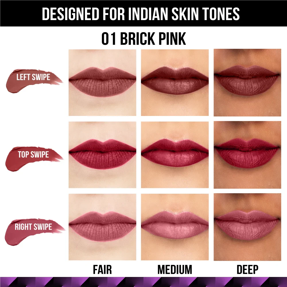 • Ultra-Pigmented Matte Finish: This 3-in-1 Lipstick seamlessly combines intense pigmentation with a luxurious matte finish for comfortable wear.