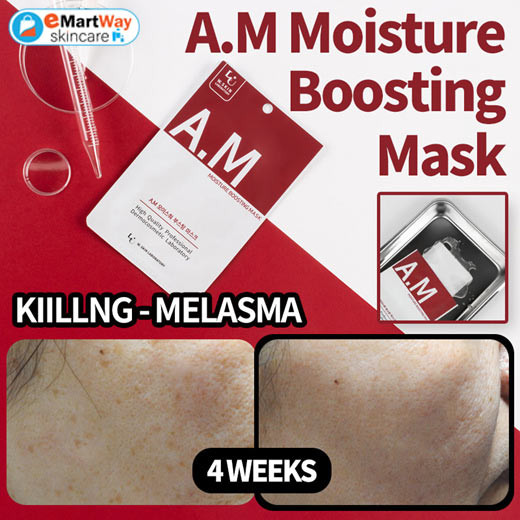 The W.Skin Laboratory A.M Moisture Boosting Mask is a hydrating sheet mask that brightens the skin, while improving skin elasticity. The result is a plump and glowing complexion! This will moisturizing and enhance the skin. Helping whitening and wrinkle care & Reduce melasma just 4 weeks